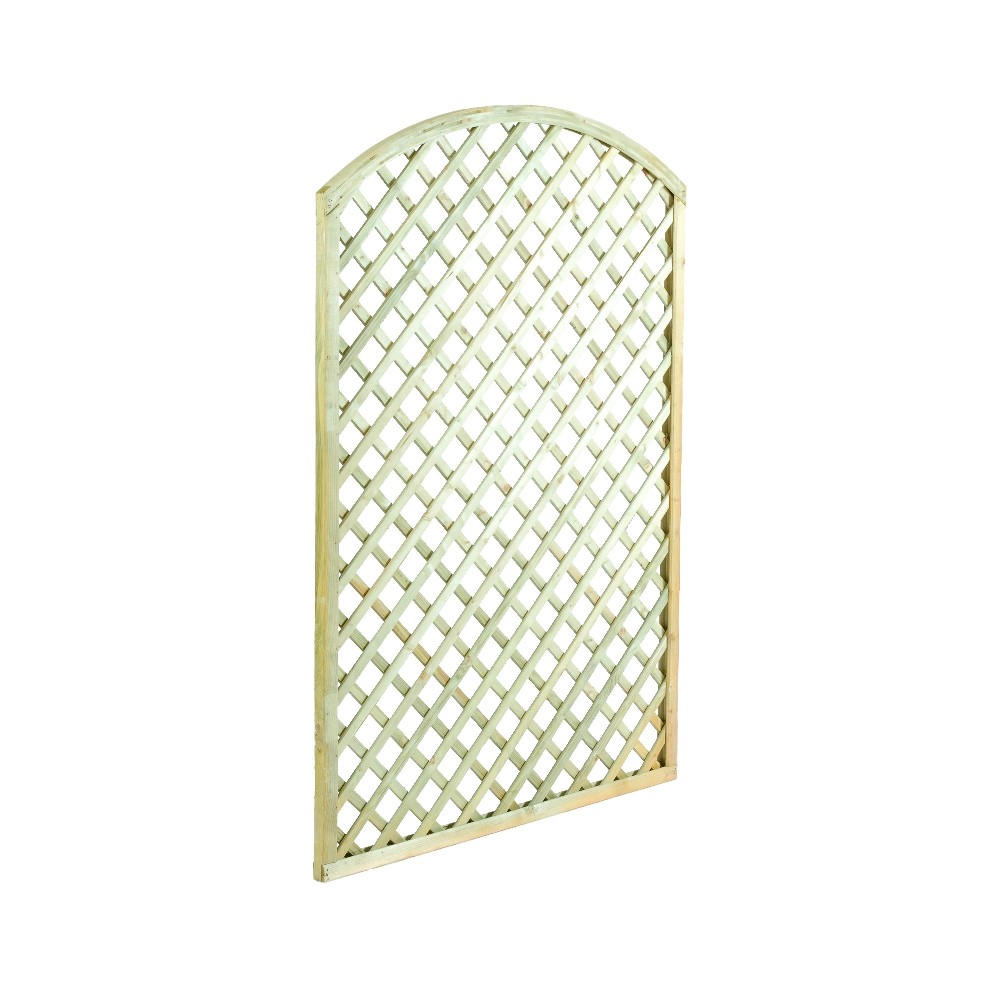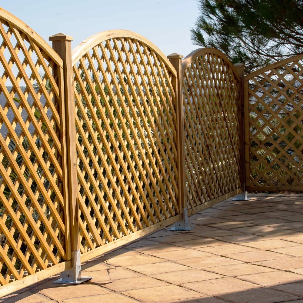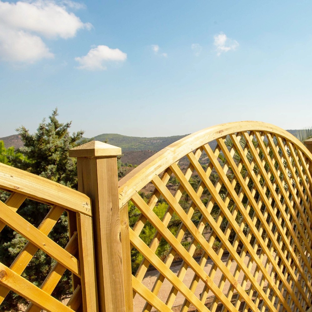 Το Καφασωτό Διαγώνιο Αψίδα 6x6εκ. είναι κατασκευασμένο από υψηλής ποιότητας εμποτισμένο σκανδιναβικό πεύκο, με ανθεκτικότητα στον χρόνο και τις εξωτερικές συνθήκες. Διαθέτει περιμετρικό πλαίσιο διατομής 4,5 x 4,5εκ. και εσωτερικό πλέγμα από πηχάκια διατομής 1,2 x 3εκ., τα οποία σχηματίζουν ρόμβους διαστάσεων 6 x 6εκ., προσφέροντας μέτρια ορατότητα και αισθητική ισορροπία.