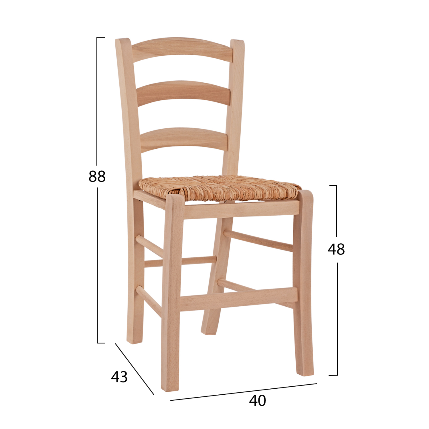 Καρέκλα παραδοσιακή καφενείου από ξύλο φουρνιστής οξιάς, άβαφη με ψάθα.