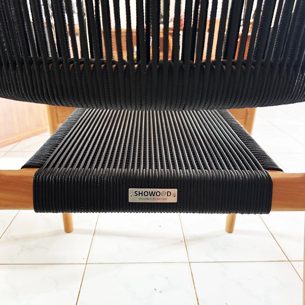 Η καρέκλα εξωτερικού χώρου από φυσικό teak και μαύρα συνθετικά σχοινιά είναι ένα κομψό και ανατομικά μελετημένο κάθισμα που αναβαθμίζει κάθε εξωτερικό χώρο. Ιδανική για βεράντες, κήπους ή επαγγελματικά projects. Δεν απαιτεί συναρμολόγηση και είναι κατασκευασμένη από οικολογικά συγκομισμένο teak πρώτης ποιότητας.