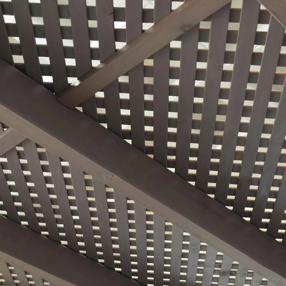 • Η ξυλεία που χρησιμοποιείται για την κατασκευή της ξύλινης πέργκολας είναι πλανισμένη και εμποτισμένη ξυλεία Πεύκης (εμποτισμένη σε κενό υπό πίεση), Φινλανδικής προέλευσης.