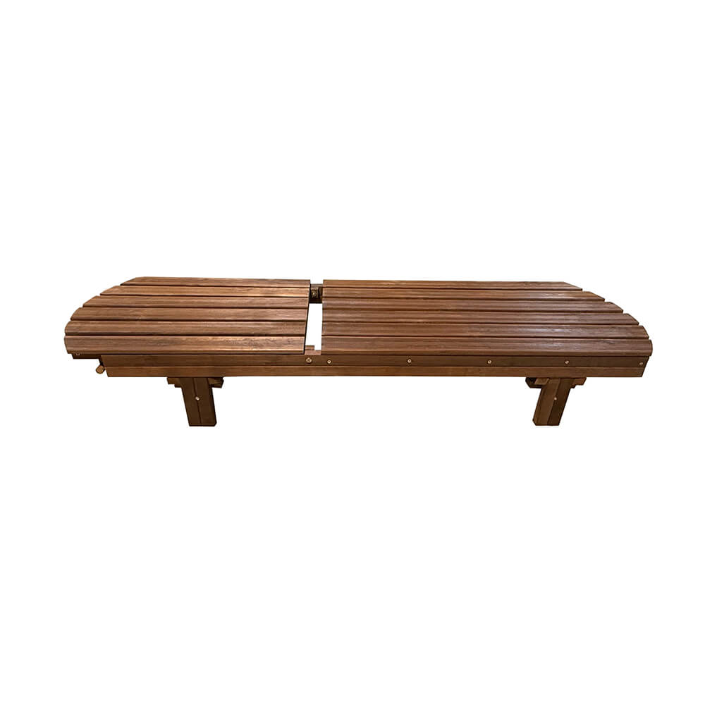 Η εταιρεία μας Group κατασκευάζει αυτήν την ξαπλώστρα παραλίας εξολοκλήρου από φυσικό ξύλο.