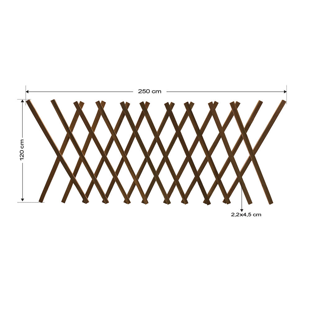 Διαστάσεις Ύψος: 60-80-100-120 cm Μήκος: έως 250 cm Διατομή ξύλου: 2,2 × 4,6 cm