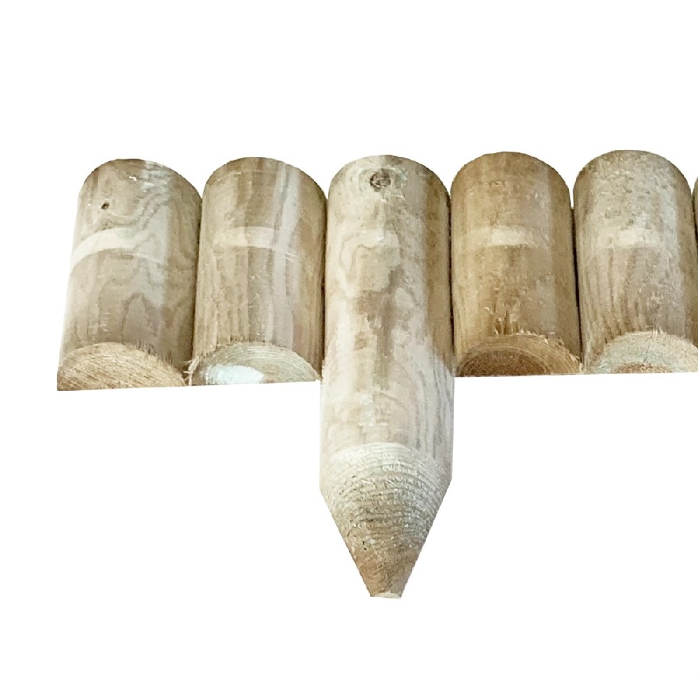 Χαμηλός ξύλινος φράχτης κήπου από κάθετα μισόξυλα Ø7εκ., ύψους 15εκ. και μήκους 105εκ. Κατασκευάζεται από Σκανδιναβική πεύκη εμποτισμένη μασίφ, ανθεκτική στην υγρασία και στις εξωτερικές συνθήκες. Στα δύο άκρα διαθέτει μισόξυλα ύψους 30εκ. με μύτη, ώστε να καρφώνεται απευθείας στο χώμα χωρίς πρόσθετα αξεσουάρ. Ιδανικός για παρτέρια, μπορντούρες, χαμηλές περιφράξεις και διακοσμητικούς διαχωρισμούς, συνδυάζεται άριστα με πέτρινα στοιχεία και φυσικά υλικά.