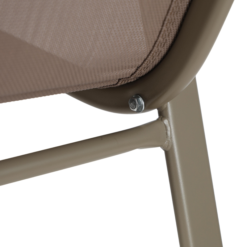 Κυρίως σώμα σκαμπό από εξαιρετικής ποιότητας textilene. Το textilene είναι ύφασμα μεγάλης αντοχής στην ηλιακή ακτινοβολία και την υγρασία ενώ παράλληλα αφήνει το δέρμα να "αναπνέει" δημιουργώντας έτσι άνεση στο κάθισμα.