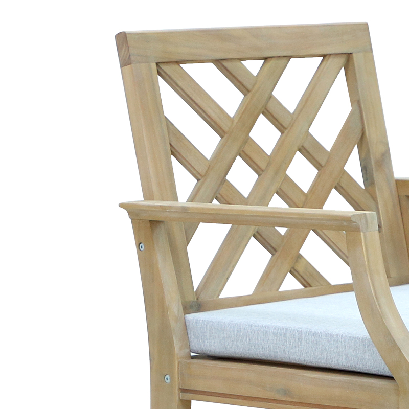 Σκελετός κατασκευασμένος από ενισχυμένο ξύλο ακακίας. Το ξύλο ακακίας είναι σκληρό και ανθεκτικό στη φθορά, κάνοντάς το κατάλληλο για επίπλωση και χρήση σε εξωτερικούς χώρους. Είναι γνωστό για την ανθεκτικότητά του, την ομορφιά που προσφέρει το φυσικό του χρώμα και την αντοχή του. Χρησιμοποιείται ευρέως στην κατασκευή επίπλων, δαπέδων, επιφανειών εργασίας και εξωτερικών δομών όπως κήποι και μπαλκόνια.