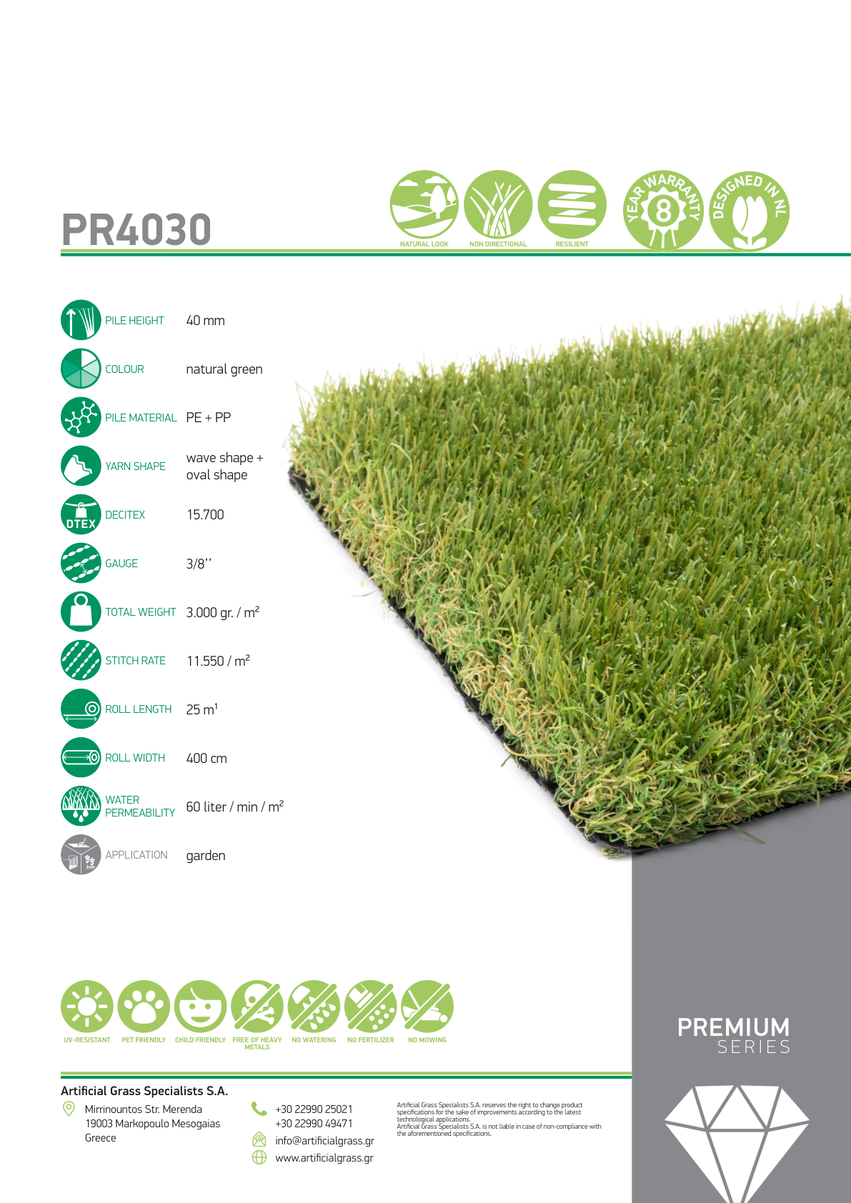 Υλικό πέλους (Pile Material): PE + PP (πολυαιθυλένιο + πολυπροπυλένιο)