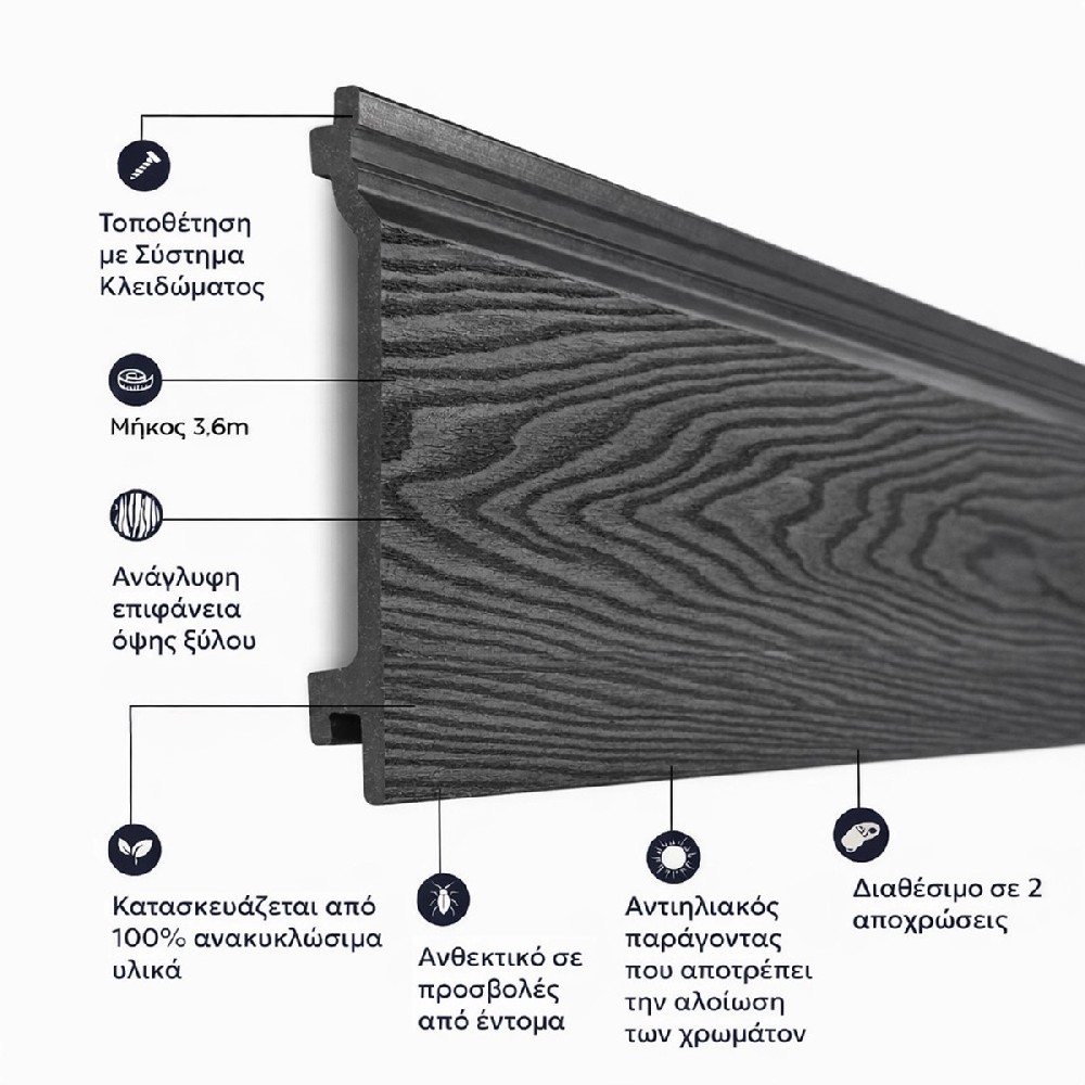 3D συνθετικά πάνελ επένδυσης κατασκευασμένα από WPC, τα οποία αποτελούνται από ξύλο, υψηλής ποιότητας ανακυκλωμένο πλαστικό και φίλτρα UV.