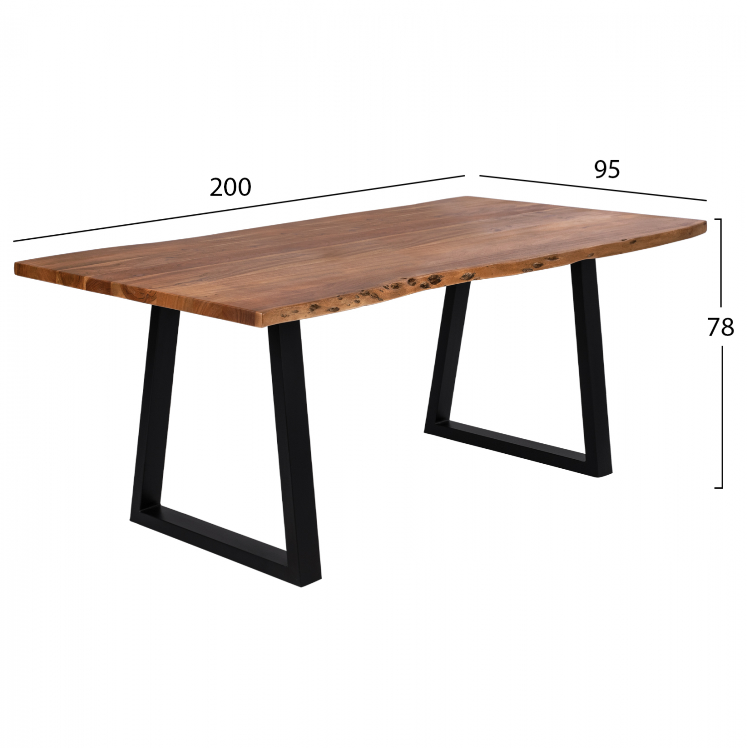 Το τραπέζι είναι κατασκευασμένο από μασίφ ξύλο ακακίας σε φυσική απόχρωση και μέταλλο σε μαύρο χρώμα.