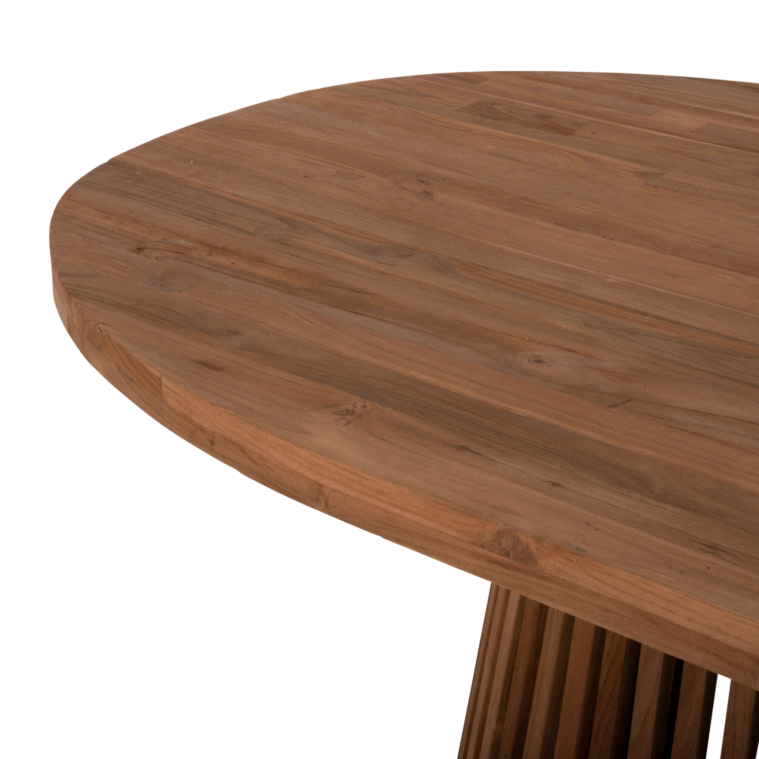 Το τραπέζι είναι κατασκευασμένο από ΑΝΑΚΥΚΛΩΜΕΝΟ μασίφ ξύλο ΤΕΑΚ. Όταν αναφερόμαστε σε μασίφ, εννοούμε τα ξύλα που κατασκευάζονται ολοκληρωτικά από τον κορμό δέντρου. Το μασίφ είναι η πιο ακριβή επιλογή σε είδος ξύλου αλλά ξεχωρίζει για την διαχρονική αισθητική του.