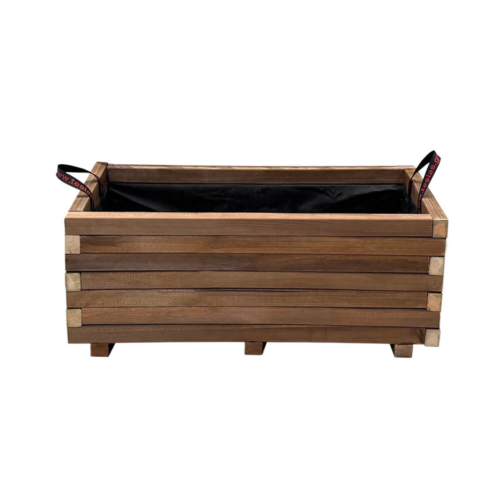 Διαστάσεις Μήκος: 70cm Πλάτος: 30cm Ύψος: 32cm Βάρος: 13kg Λίτρα χώματος: 43lt Τεχνικά Χαρακτηριστικά Είδος ξύλου: Σουηδική εμποτισμένη πεύκη.