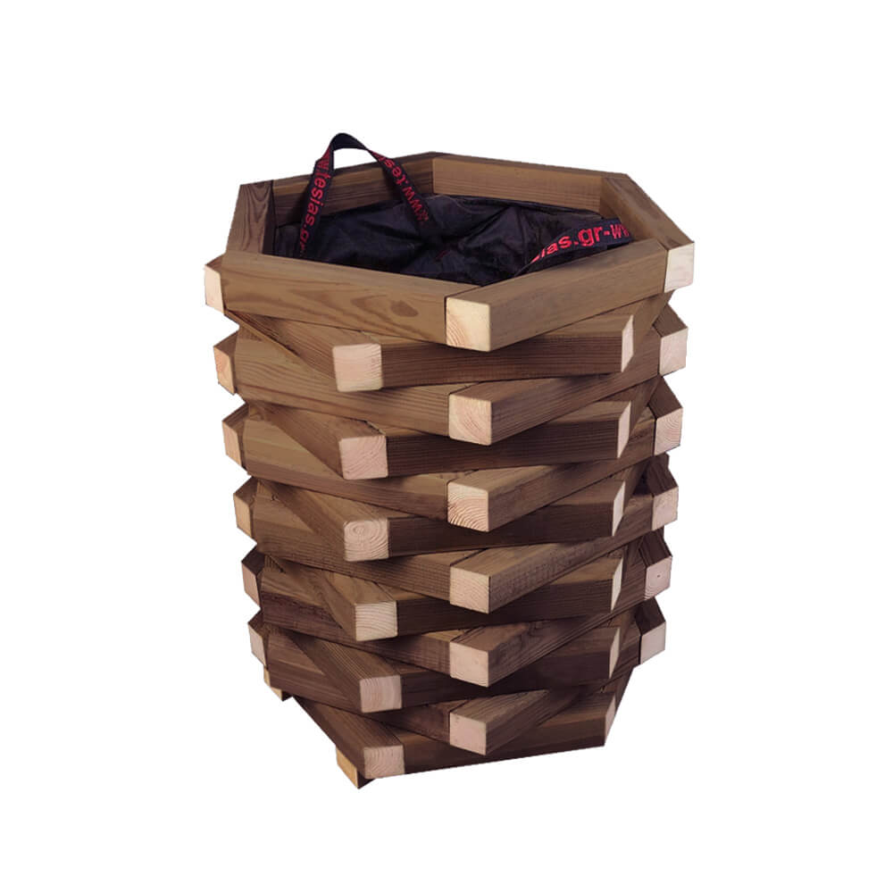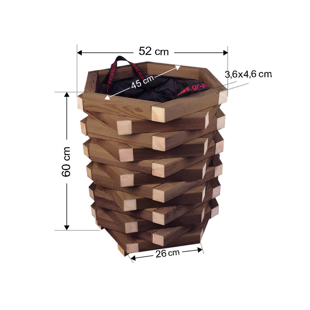 Διαστάσεις Μήκος: 52cm Πλάτος: 45cm Ύψος: 60cm Βάρος: 30kg Λίτρα χώματος: 105lt Τεχνικά Χαρακτηριστικά Είδος ξύλου: Σουηδική εμποτισμένη πεύκη.
